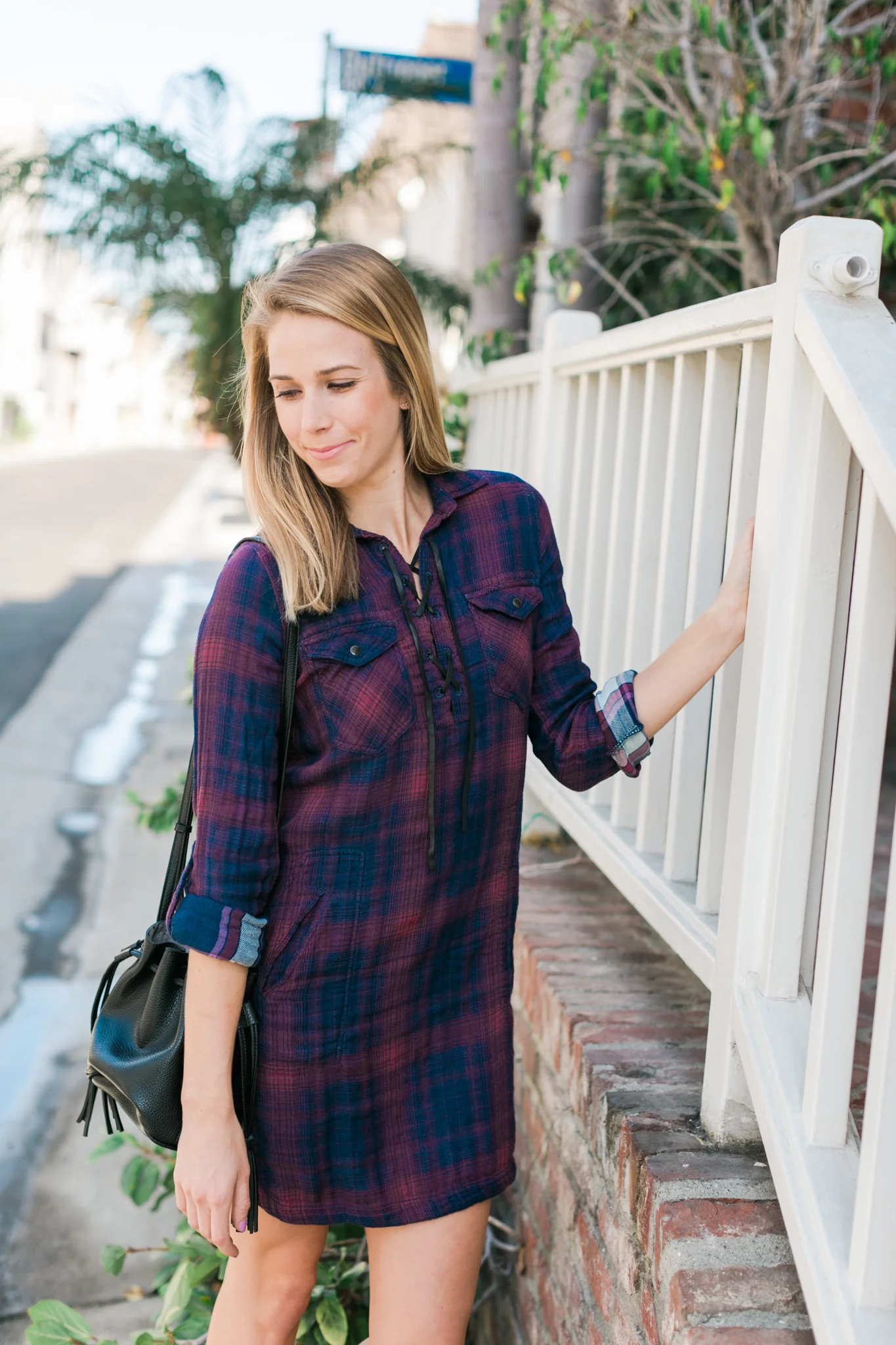 Fall: tis the season for pumpkin spiced everything, Hocus Pocus and a plaid filled wardrobe. I'm a sucker for a plaid shirt but a plaid dress? My heart almost skipped a beat. The lace up detail combined with the loose fit and roll up sleeves had me falling for fall.